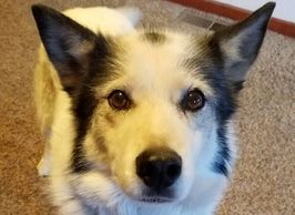 Curious (bordering on nosey- ha!) intelligent, funny as heck- this dog entertains us hourly with her antics. When she's not sorting our laundry, she can be found playing fetch or self-entertaining with an ice cube. She gets more likes on social media than any self-respecting dog should. We love this "unadoptable" dog despite her challenging behavior and have selfishly decided to keep her until end days. Welcome home to stay, Sprocket.