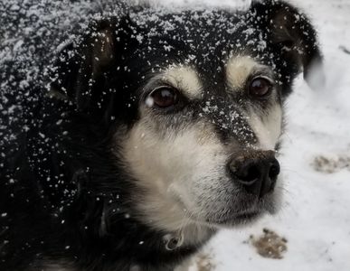 MoonDog has really been dealt a raw deal. This now eleven year old girl came to us as part of a rescued sled dog situation way back in 2011; in fact, our permanent pack member ABRACADBRA is her teammate/sister. Cuteness MD has been adopted twice since then and seriously, due to no fault of her own,she has been returned-each time after a number of years! We don't need to go into details, but this past time she gained so much weight it put her health and longevity in peril. As of today, she is on a decent diet, supplements, and an exercise plan so she can go to the doctor and have some of her benign fatty cysts removed -among other things. Once again, it feels like humans have failed her over and over again. We're just grateful we've been here to pick up the pieces and help her- no matter how much or how many times. As of November 2018, we aren't looking to place her so much in a FurEver Home- although we are open to it if it's in the Thunder Puppy family. What would help the most is finding her a nearby Foster situation while she continues to get back in shape.
